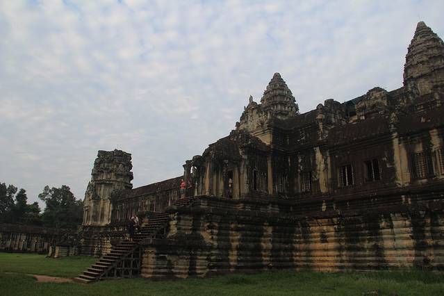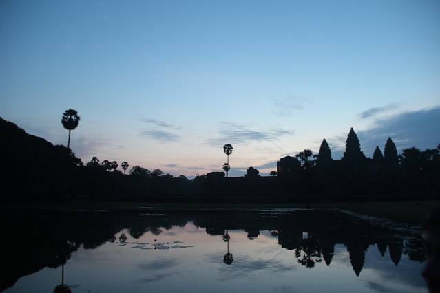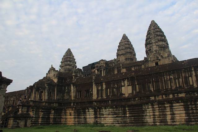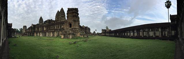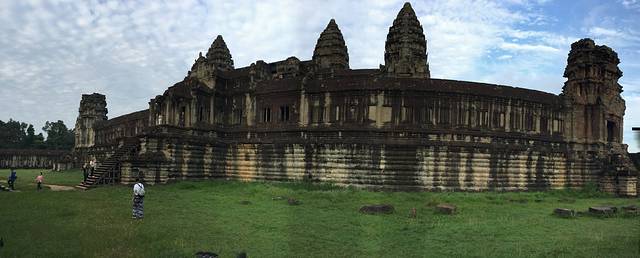 Angkor Wat,就是“吴哥窟”,又叫小吴哥。游客前来吴哥遗迹的第一站,也是看日出必来的摄影景点。中心寺庙包括三层,每层都用红土围起一个正方形,周围是错综复杂的长廊。第二层和第三层的每个角都有塔作为标志,每座塔的顶端有象征性的莲花塔。中心寺庙的外围是800米长的浅浮雕。