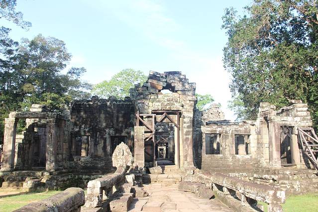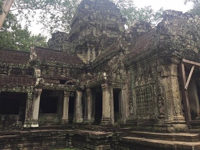 供奉湿婆神和毗湿奴的寺庙。这座寺庙是由中国负责进行修复的,达到了对面这座姊妹殿托玛农神庙的水平。不过跟先前观赏的其他寺庙来说,周萨神庙真的算是蛮小的。