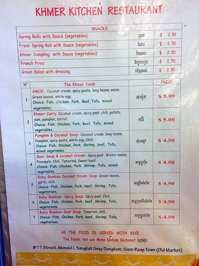 对了,差点忘记这家好吃到哭、人气最旺的高棉厨房餐厅了。墙裂推荐哦~Pub Street有两家。