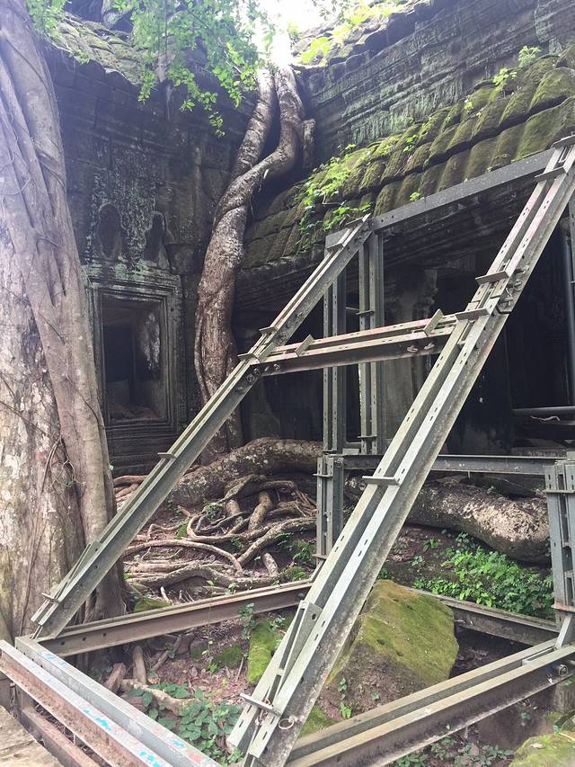 整座寺庙被丛林吞噬,目前周围的树木得到了清理,只留下古树,并且定期修剪。