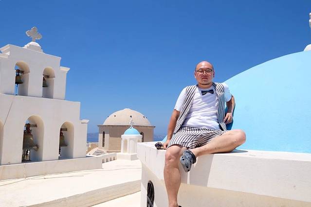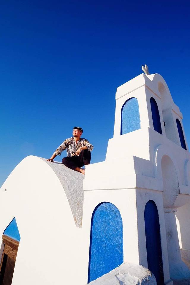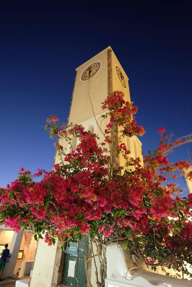 在每个转角,每个视野都能看到教堂和钟楼,也都呈现着希腊国旗上的原色——蓝与白。