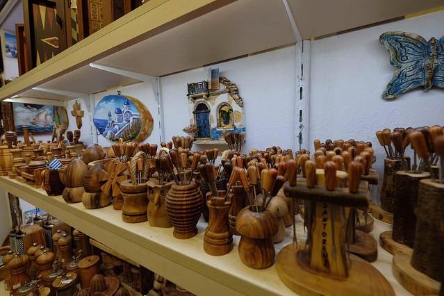 到这里的游客都可以免费品尝一杯特色的甜葡萄酒。Vinsanto品牌也是岛上特有的,在雅典等其他地方是没有卖的,所以可以在这里买一些当作特产礼物送人。