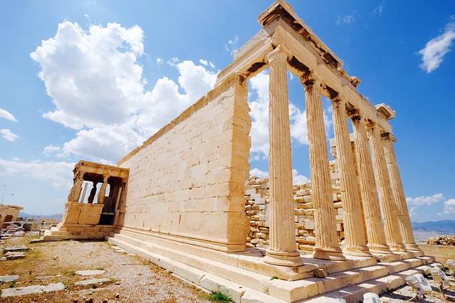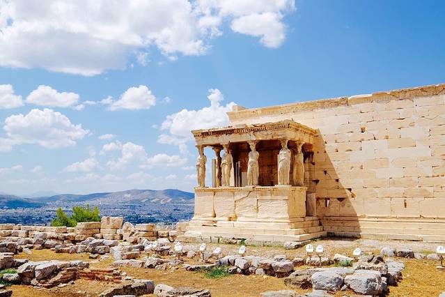 这座神殿南侧廊台的六尊女像柱(Caryatids),是古希腊雕塑的经典之作;不过现在所看到的优美女神像列柱并非真品,要看真品得到卫城博物馆及伦敦的大英博物馆。