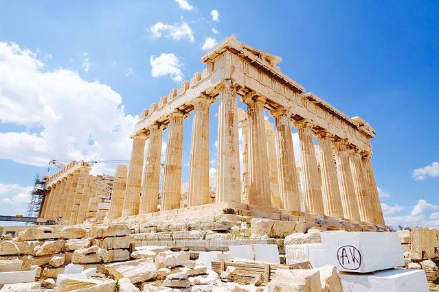 今天的帕特农神庙,很大程度上,是工程师和考古学家们复原的结果。它的周围,仍然散落着无数巨石。据说将其全部拼接上,帕特农神殿的体积还能多出17%来。