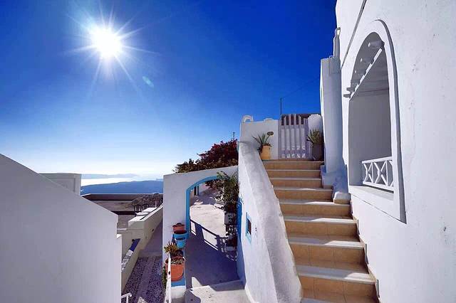 Imerovigli之所以被称作圣岛露台,就是因为地势高和突出。我们一路都在上台阶,不停地爬高。
