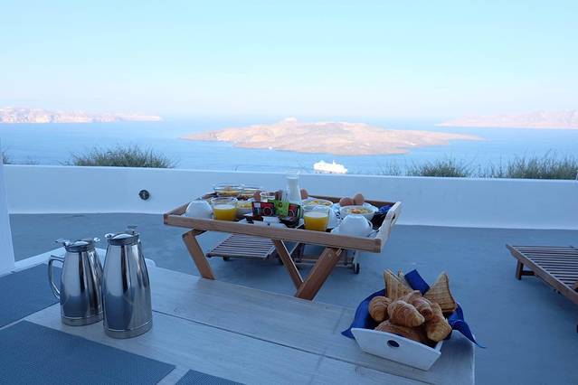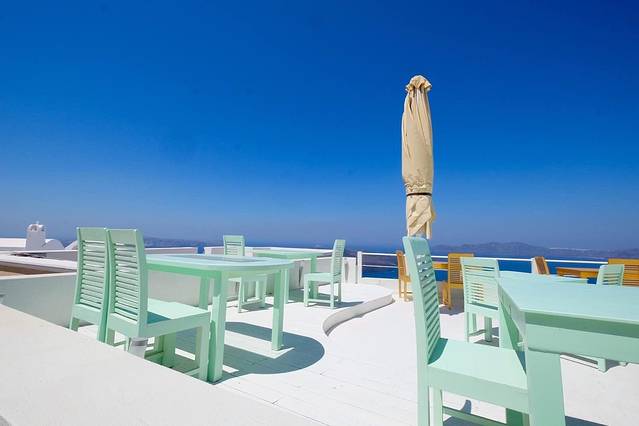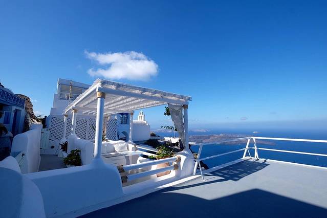 早晨的闲暇时光,你可以在这里俯瞰爱琴海、眺望对面的火山岛、吹吹海风,晒晒阳光浴或在步道上随意的走走逛逛,拍拍照片。
