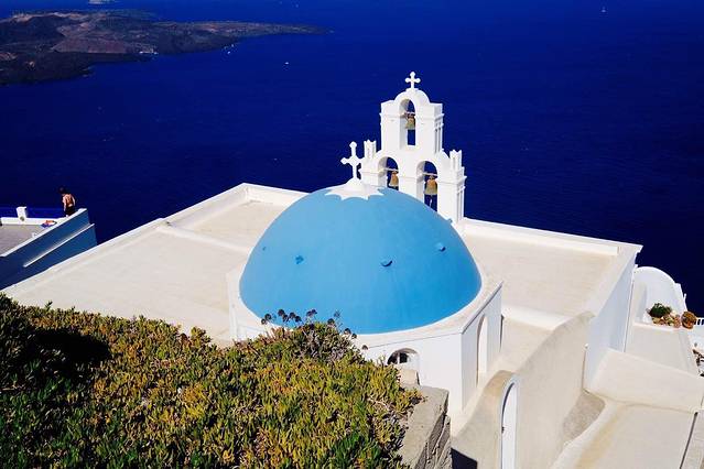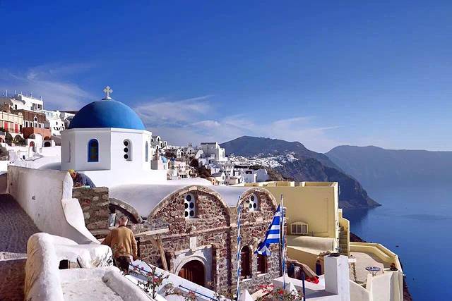 美国国家地理杂志创刊于1888年10月,不知哪年哪月这家杂志的封面刊登了一幅希腊圣岛菲罗斯特法尼小镇的蓝顶教堂的照片,这个教堂就声名远扬了。这个教堂的名气,直接带动了当地的旅游业
