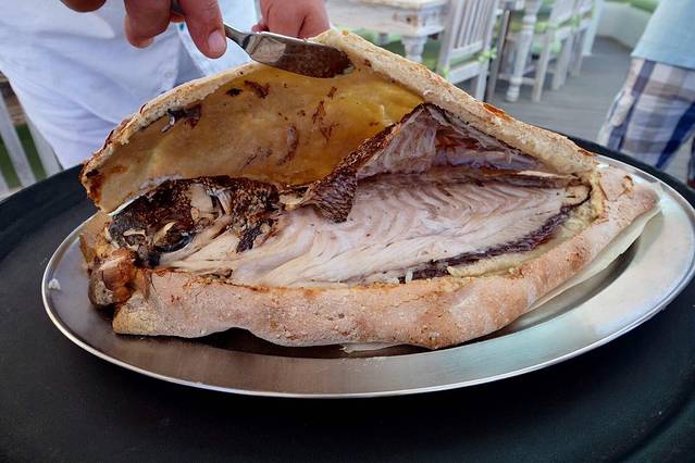 厚厚的海盐裹着将近4公斤的海鱼,用秘制物方法烹饪而食,非常独特和美味。