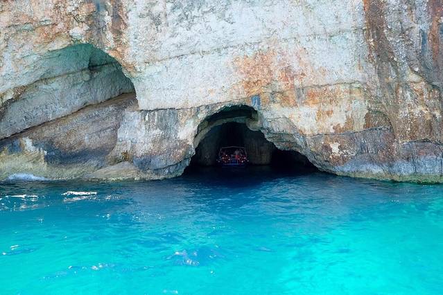 地中海周边的蓝色洞穴有很多,都是因岩石海藻和阳光的完美结合而形成,比较有名的是位于意大利阿马尔菲海岸附近的卡普里岛蓝洞,以及位于马耳他岛的蓝洞。在扎金索斯岛也有一个蓝洞,船票和去沉船湾的票是一起的。