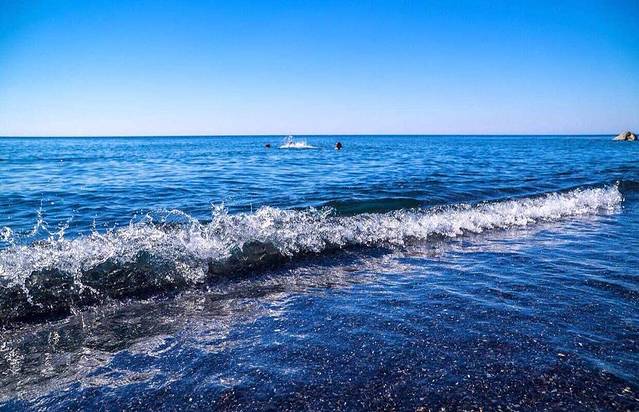 黑沙滩上的沙是黑的,水也是黑的,黑色海滩名气不小,海水清凉、干净,还有美容作用,一会到黑沙滩,大家可以到海里去游泳,感受海水的清凉。