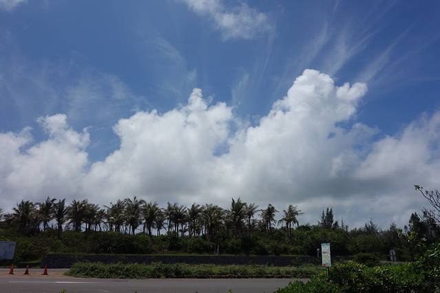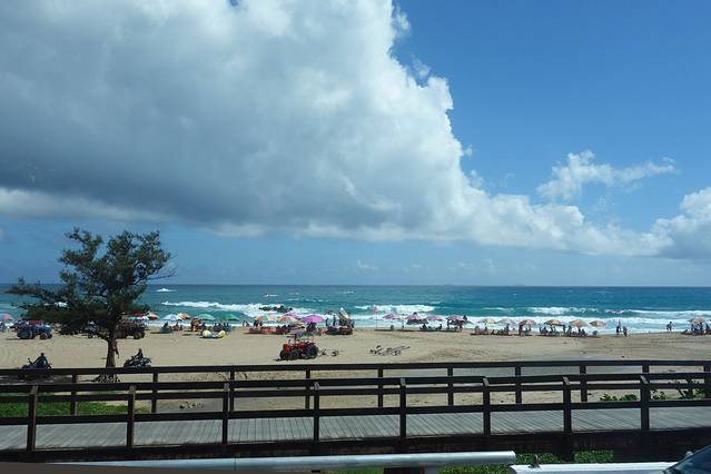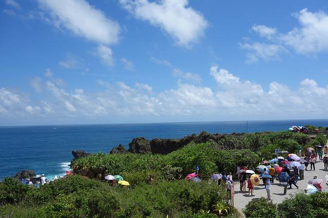 由于地形辽阔,面向广大的太平洋,尤其一登上海崖,视野开阔,一旁的绿地、眼前广大的海景、远处碧绿的青山及抬头那清澈的蓝天伴随着朵朵白云,都不吝啬的尽收眼底,不禁令人惊叹大自然的美丽风采。