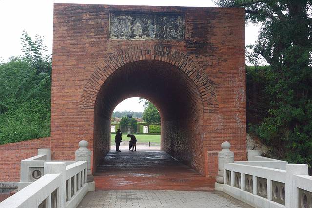 城门以红砖砌成,外额上书“亿载金城”、内额“中流砥柱”,皆出自沈葆桢手笔。城内绿草如茵,平坦宽广,可见沈葆祯纪念铜像。
