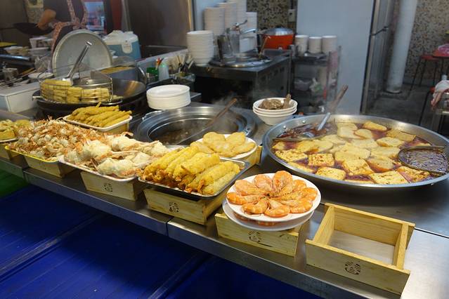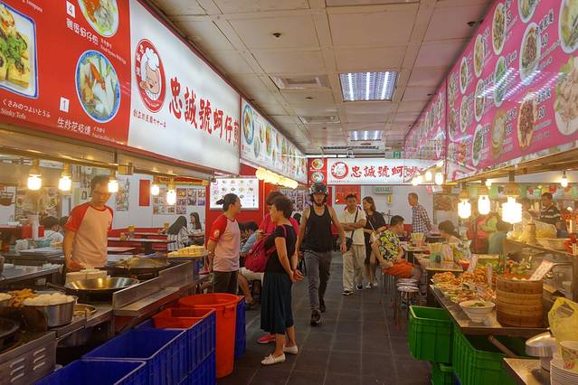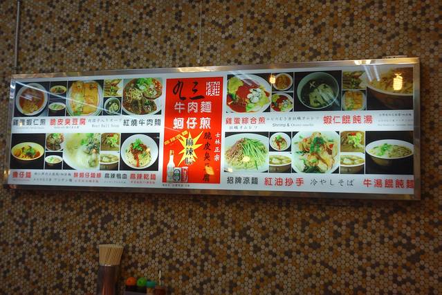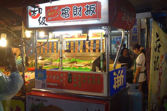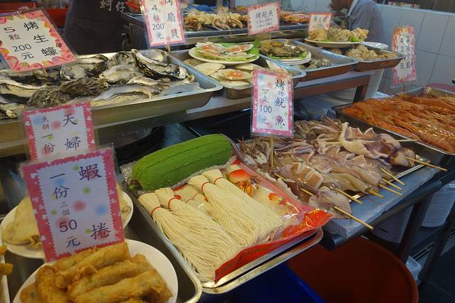士林市场铁皮覆顶,市场内囊括大江南北综合小吃,从牛排、铁板烧到蚵仔煎、广东粥、生炒花枝,琳琅满目
