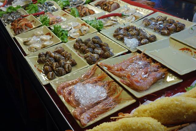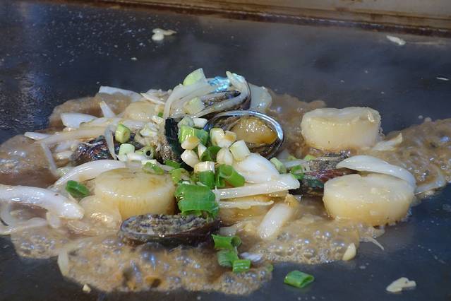 炒一盘鲍鱼鲜贝,500新台币,折合人民币100元左右。