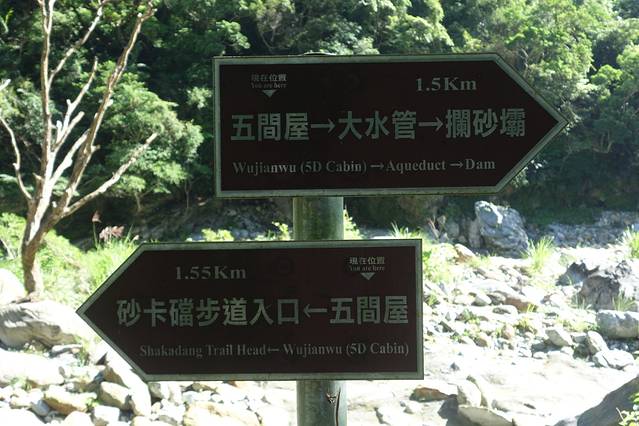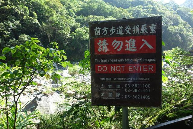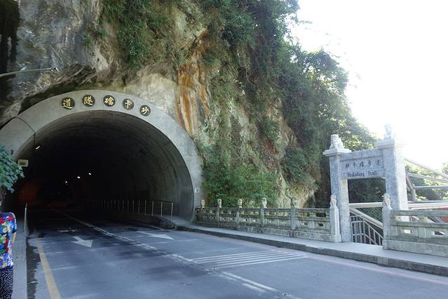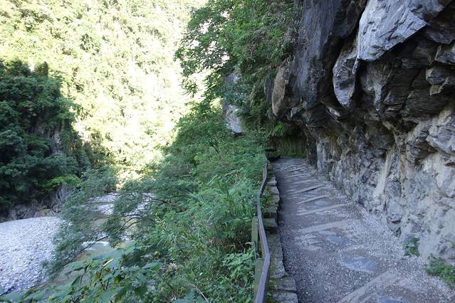 砂卡礑步道是特别修的一条路,这条路的特别之处是,路是沿着山而建,路非常狭窄,有的地方只能过一个人,头上是峭壁,经常需要弯腰过去。