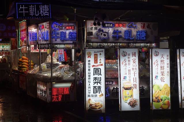 来到士林夜市,体验台北夜市街景。士林夜市是台北颇具规模且相当知名的夜市之一,有超过五百家店面和摊贩。