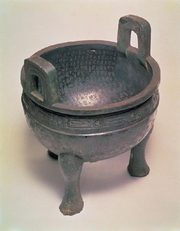 (图片摘自网络)毛公鼎,高53.8厘米,口径47.9厘米。圆形,二立耳,深腹外鼓,三蹄足,造型端庄稳重。颈部饰重环纹及弦纹各一道,简朴庄严。腹内铸有铭文32行、499字,毛公鼎因作者毛公而得名,是现存青铜器铭文中较长的一篇。