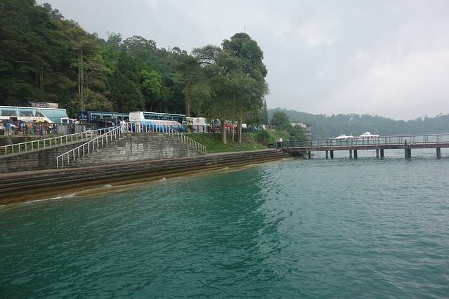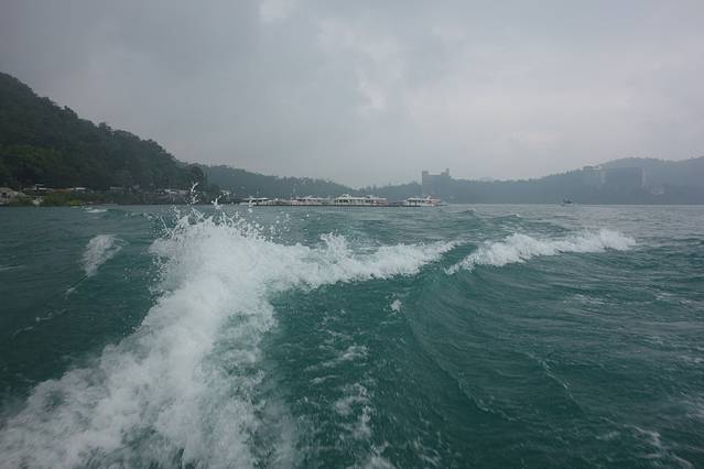 我们乘坐游船游览日月潭,欣赏湖光山色,水波涟涟。日月潭湖面山景环绕,如诗如画的梦幻美景。天气好的话,四周长满绿树的山,就会倒映在湖里了。
