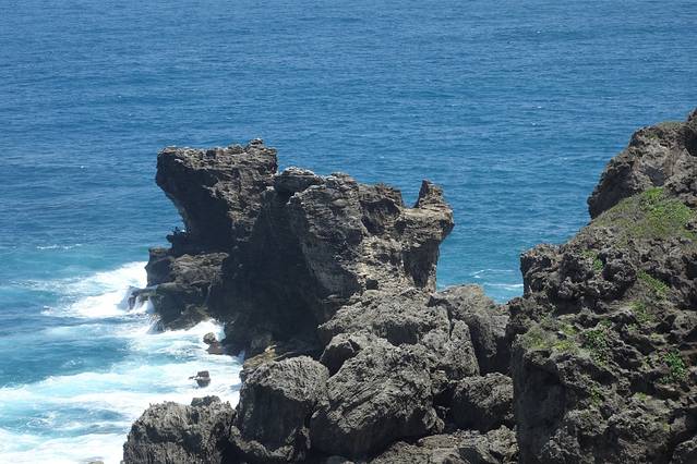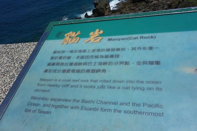 猫鼻头名称的由来,乃因岩岸旁一块突出的珊瑚礁岩,其外型像蹲坐的猫而得名。
