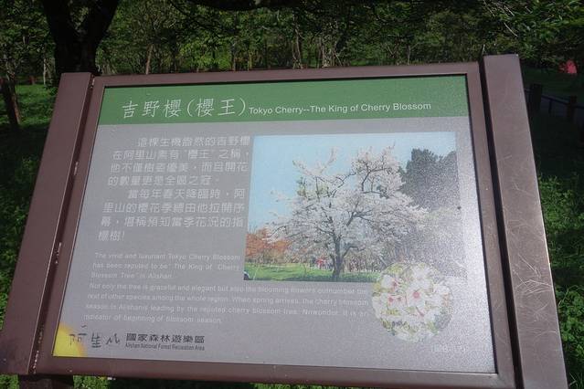 阿里山上有很多当时日本人种植的樱花。尤其是宾馆前百年历史的吉野樱,被称为“樱王”树,据说它永远是开花最早开花最多的樱花树。