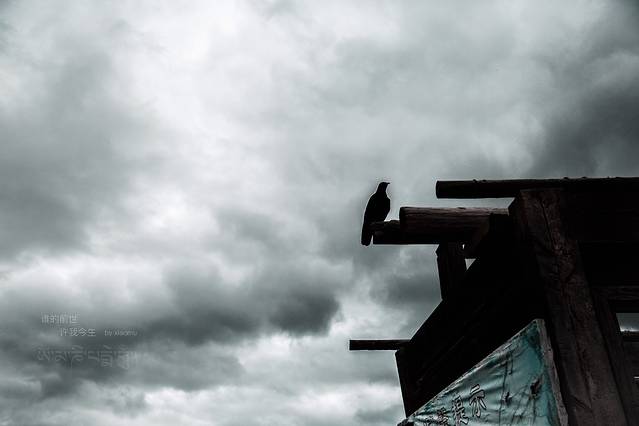 那一刻,时间似乎静止了,只有呼啸的风马旗和乌鸦的叫声响彻山谷,