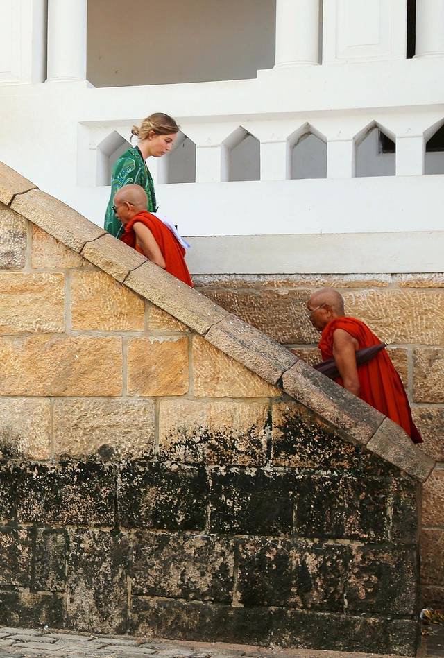 强调一下:要进入斯里兰卡的寺庙,衣着是有要求的,首先要脱鞋,可以穿袜子,然后一定要过膝盖的长裤或者长裙,再然后一定要有袖子的衣服,长袖短袖都可以但是不能无袖。还有,不能带帽子!