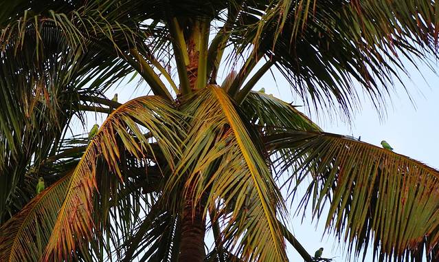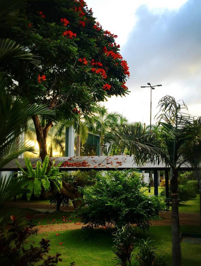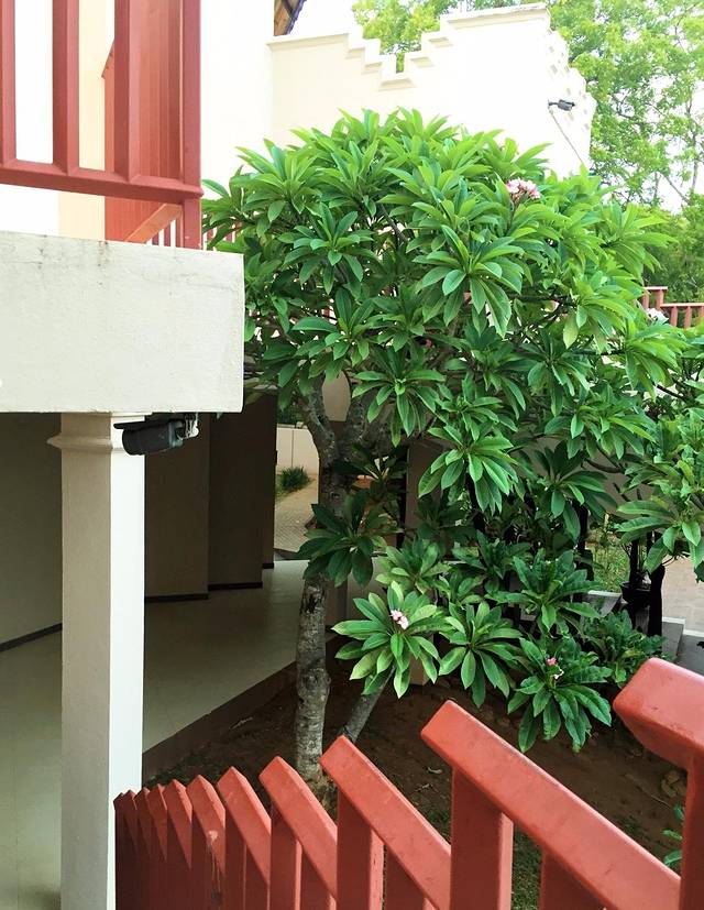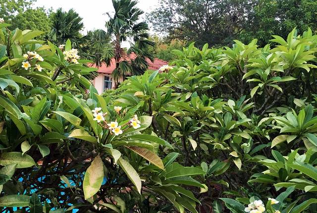 酒店有好多椰子树,鸡蛋花树,还有好多鸟,包括乌鸦和绿色红嘴儿的鹦鹉!非常多,一大早就喳喳叫。
