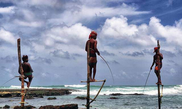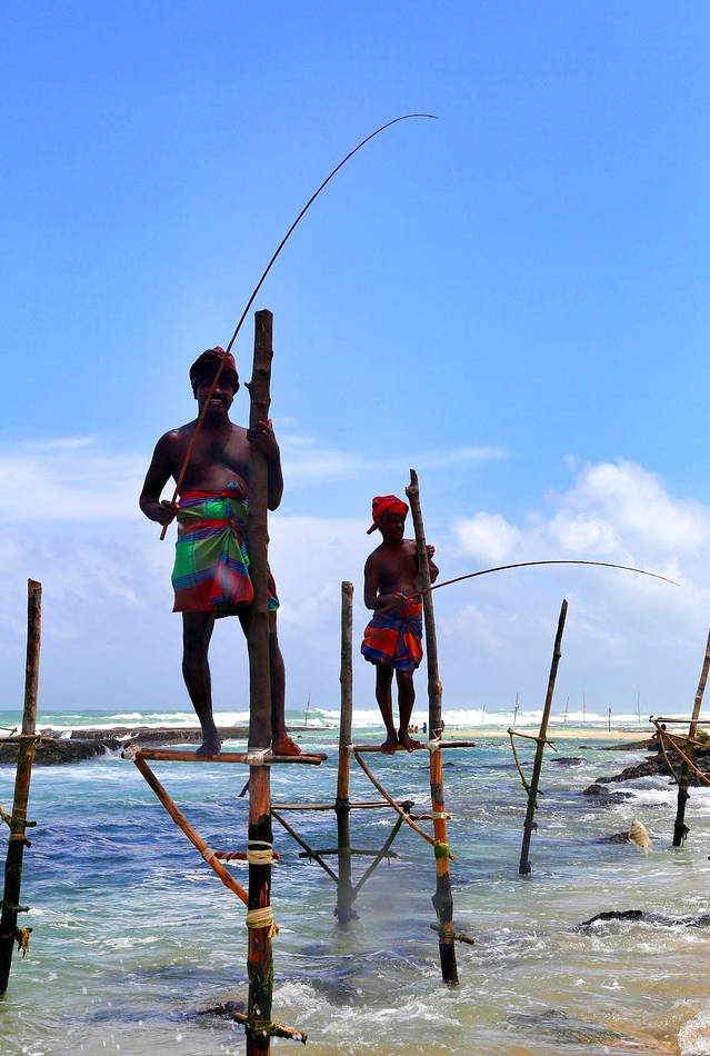 继续上车往加勒古城走,沿途停车,终于看到了很有名的“高脚渔夫”!话说古代的斯里兰卡人就是这么站在海中的木桩上钓鱼的,现在呢,这算一项旅游项目了,要让当地人上去摆好姿势拍照是要给钱的哟,没有游客的时候他们顺便钓点儿鱼来贴补家用。。。不过我们旅行社应该是已经统一付过钱了,导游说我们拍照和上去体验都免费,哈哈哈。