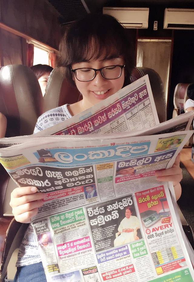 装模作样的看看当地报纸,当然了,看不懂,只能看看画儿。当地的“蜗牛字儿”挺可爱的。蜗牛字儿是我们自己看样子起的名字哈,好像这个字是僧伽罗语。