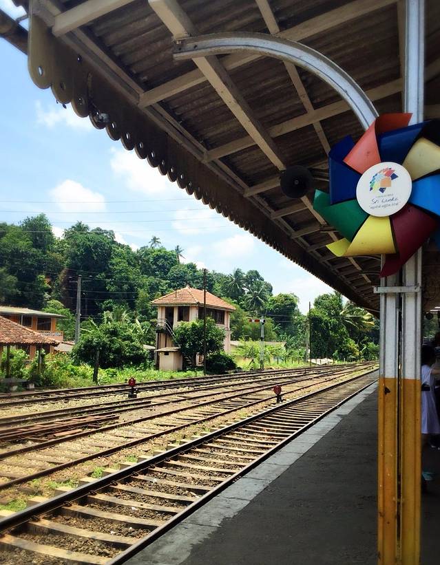 去吃了自助餐午饭之后,就往火车站去了,去坐期待已久的山间小火车啦!路程有5个小时左右,坐到努瓦拉埃利亚,就是比较冷的茶山上。很快到了火车站,一个小小的站。