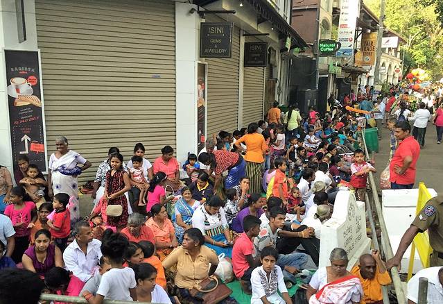 从植物园出来之后,本来是要去佛牙寺的,结果到了那里一看,天呐,真的是people mountain people sea啊!马路上,路边,里三层外三层的人坐地上。。。给我们都惊着了,咋的了这是?宝玉给我们答疑解惑,说一年一度的斯里兰卡最盛大的节日——佛牙节,从今晚开始!届时会有大象游行,还有一些歌舞表演。所以想进去的人早早就开始排队了,坐地上慢慢排着等待进寺。。。我感觉比春运买票的人还多!一看这个阵势,我们果断撤了,第二天一早再进佛牙寺参观吧。