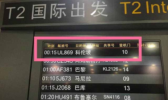 第一天的行程就是坐飞机啦~~从北京直飞斯里兰卡科伦坡,7个多小时的时长。下图画框的那趟航班就是我们坐的~~