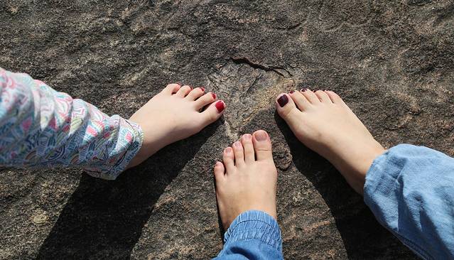 一步一步光脚走。可能有些人会觉得很烫或者有点扎脚,但是其实也还好。