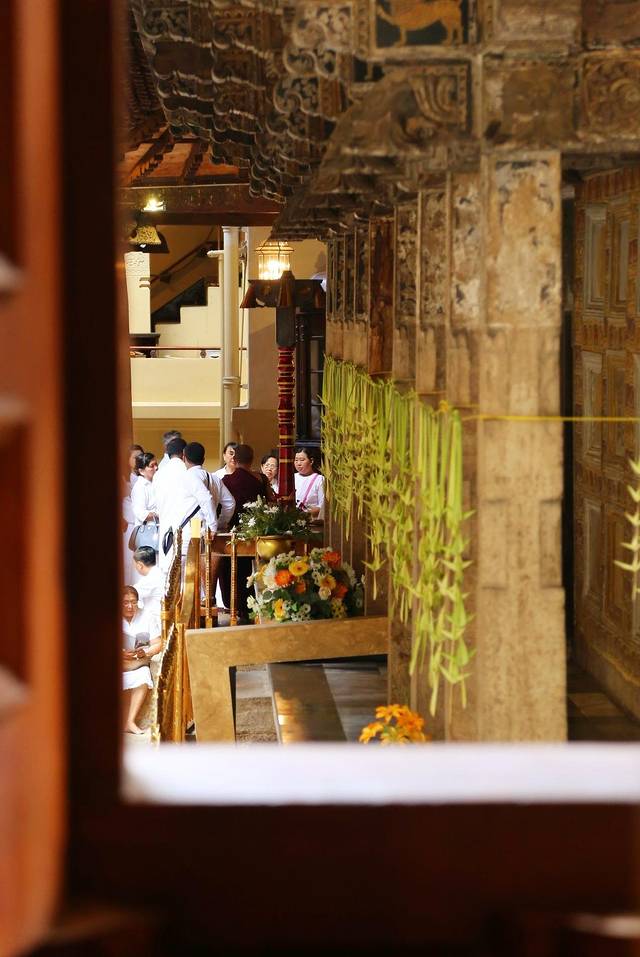 终于来到了斯里兰卡最有名的佛牙寺!进寺的规矩跟之前一样,脱鞋,长裤,有袖子,脱帽。进大门还要把包打开安检。我同事穿的是个袖子比较小的衣服,还在进门安检的时候被工作人员拽了拽。