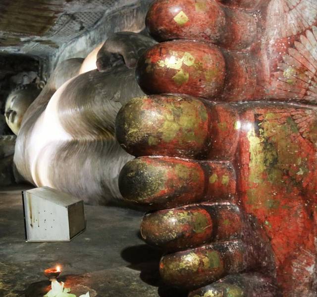 寺庙里有5个洞窟,150尊佛像,挺壮观的!尤其最大的这个卧佛~~还有一些壁画等等。
