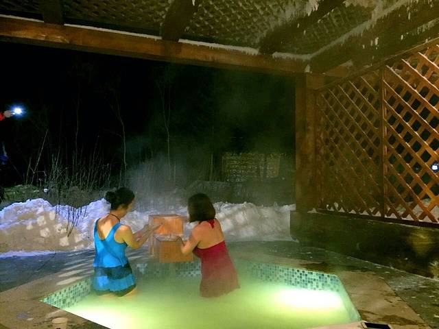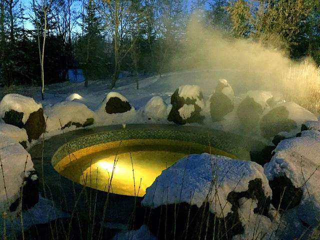 晚餐稍息片刻后,有朋友想要去泡温泉放松放松,早就听说这里的温泉举世无双,将具有医用价值的冷矿泉水稍微加热下就变身为“温泉”,泡温泉还是很讲究的既不能吃的太饱,也不能空腹,从酒店到温泉有一段20分钟车程的距离,这里的冬天零下20几度的气温丝毫不觉得寒冷。