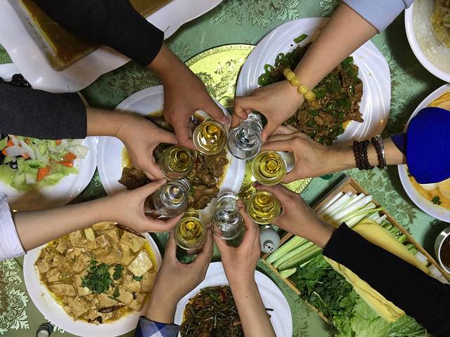 对于东北人来说,如果面前摆着一桌子丰盛的菜肴,难免有人要张罗喝酒。冬季这里景区全部免费开放,省下的门票钱统统吃到肚子里,想想都是人生一大美事。