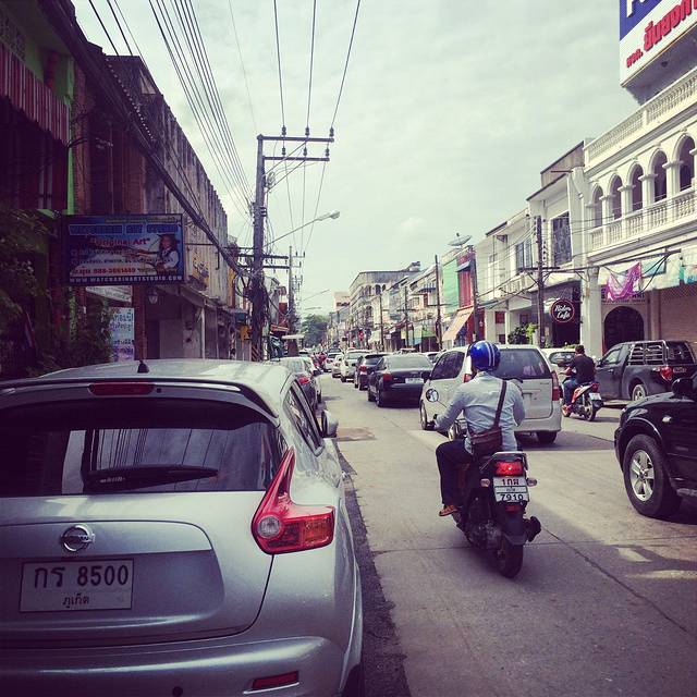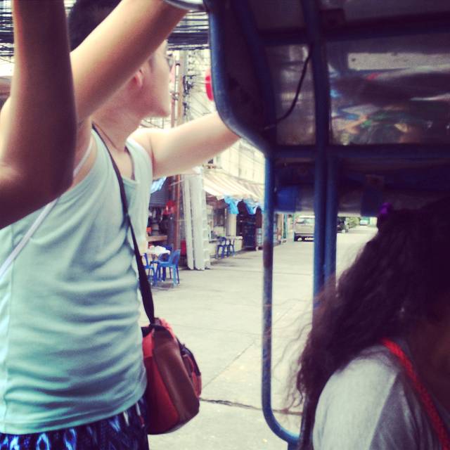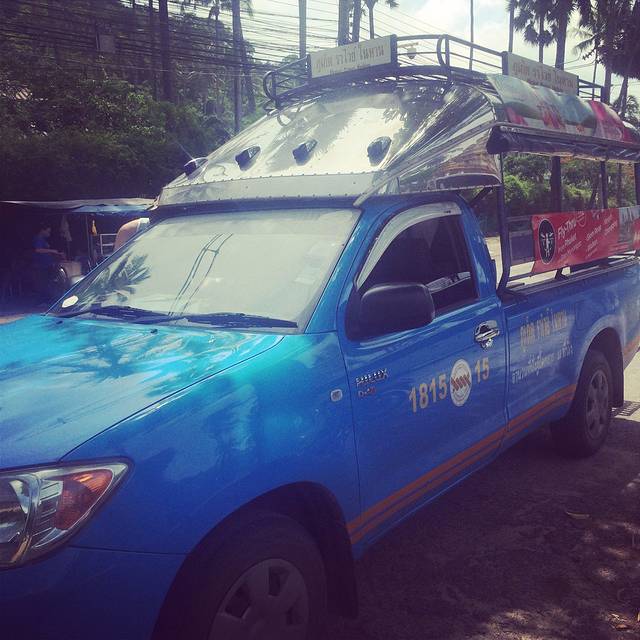 这个就是普吉的公交车,和电视剧里看到的一模一样,公交车很简陋,皮卡改装的,站位就是这样攀爬在后面。