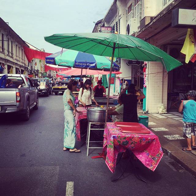 中午没有吃饭,所以我们准备去老板推荐的正宗泰国菜餐厅——onechun,紧靠普吉老街的一家餐厅,具体位置忘了,其实我们也根据地图找了很久很久```