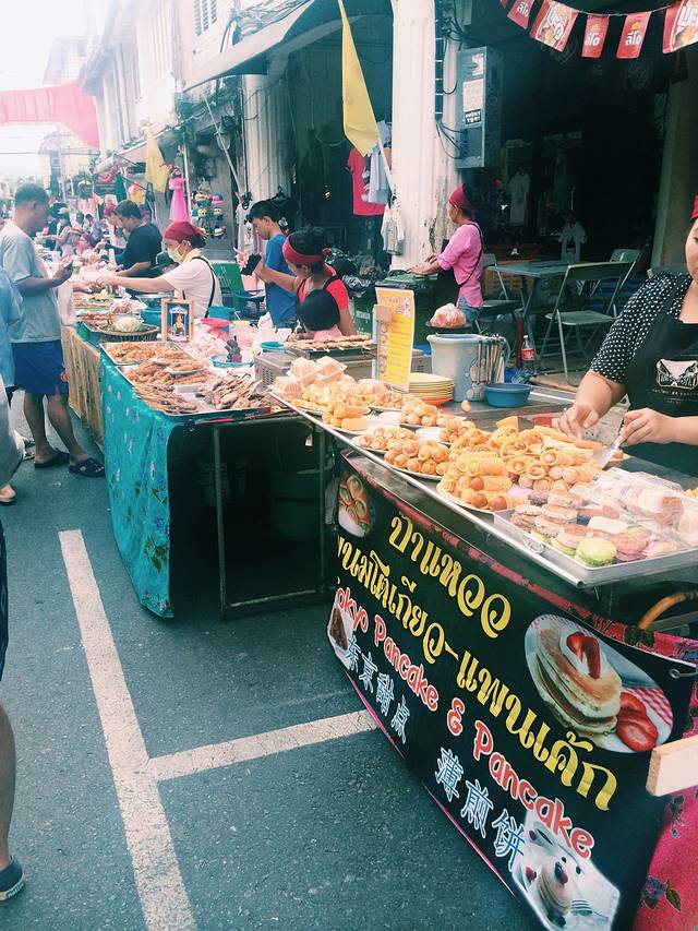 老板送我们到公交车站那,然后我们自己去坐BUS,公交车站位于普吉镇的一个市场那,于是我们准备自己在那解决早饭。刚开始是真的不适应这里的杯子里的冰比水还多,于是我要了杯热奶茶,结果证明我做了一个愚蠢的决定,我记得当时我喝完那杯奶茶的时候衣服都被汗浸湿了。包子和国内一样,我买了奶黄,香芋和豆沙馅都不错。
