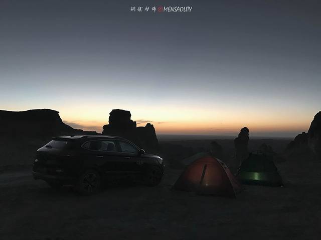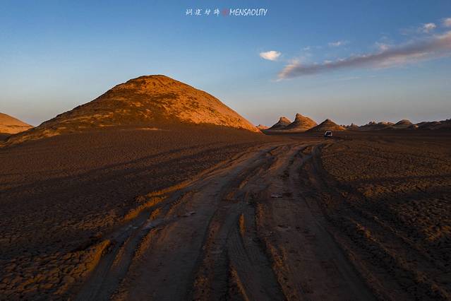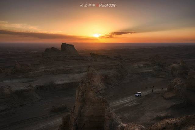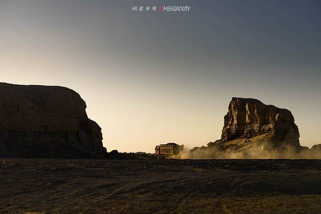 夕阳下的魔鬼城,荒芜而苍凉。而我们的车子,孤独而无助。