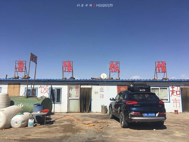 过了西台吉乃尔湖,就是一个很大的矿物提炼厂,这与我之前在谷歌地球上看到的一致,既然有大厂,旁边就应该有很多生活配套,不出所料,路边有很多简陋的板房,有吃饭的,住宿的,汽车修理的,各种大卡车停在前面。我们随机选了一家停靠,进门前抬头一看,”鲁豫饭店“!回想起在刚进入甘肃的“洛塘“服务区,老板说前几天鲁豫刚刚来过,嗯,我就觉得这趟旅程我们跟鲁豫有缘。