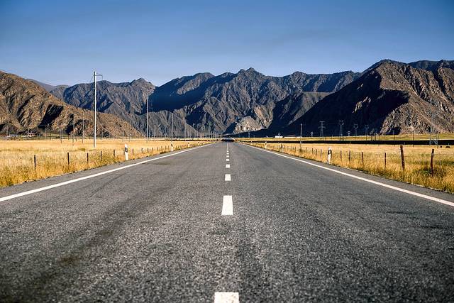 车上青藏高原,景致开始变得大有不同,天空湛蓝,草原辽阔,公路笔直。