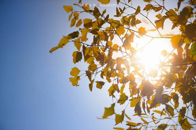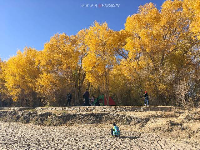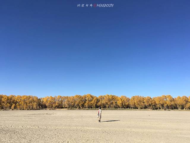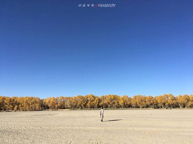 这个时候的光线刚好,胡杨叶在阳光下金黄金黄的,非常养眼,本来我应该在树林多停留一下,多拍几张的,但想到我们更想拍的是传说中死了前年还不朽的那种胡杨,于是就马不停蹄往胡杨林边上的沙丘而去。