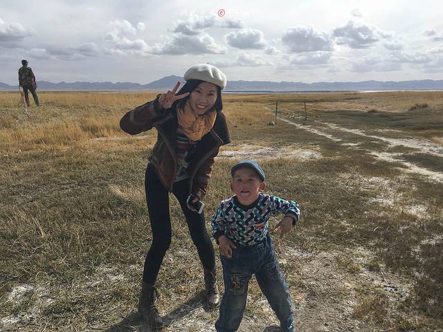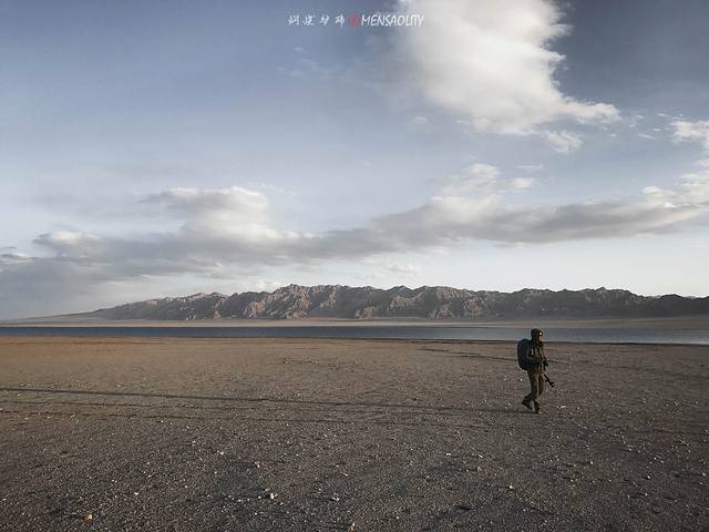 苏干湖就在一座大雪山脚下,这雪山应该是阿尔金山的一部分分支吧?远看,湖面开阔,平静,后来还发现了水鸟,这把爱拍鸟的悠悠姐给乐坏了,她第一个背着相机冲到了湖边。