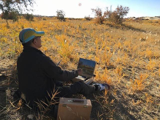 往景区里走,逐渐看到了大片的胡杨,游客虽然多但不至于拥挤,有画者在树荫下作油画,一派和谐的秋日公园景象。