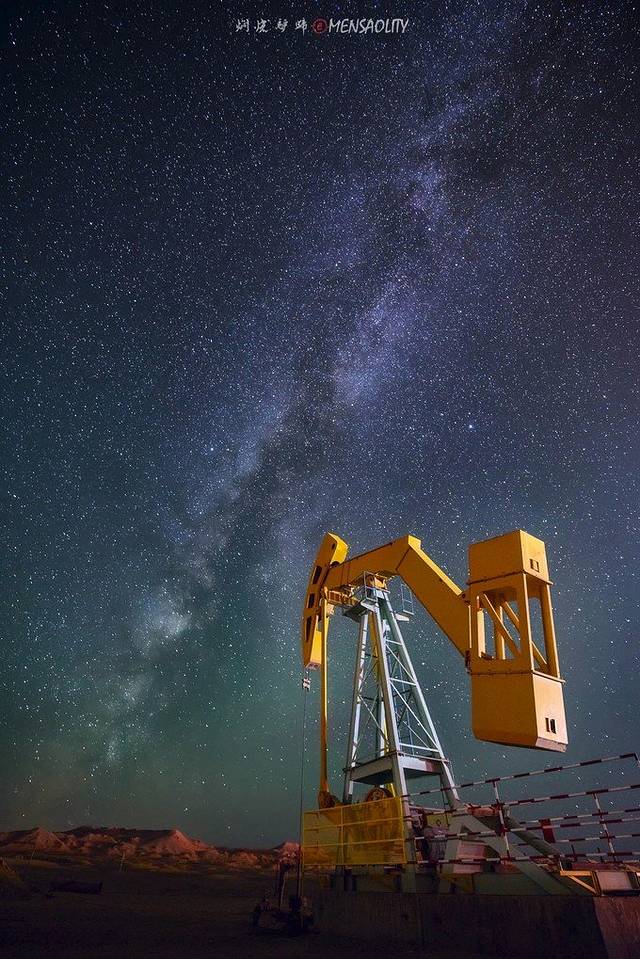 作为驾驶员中的风光狗,摄影界的老司机,我们几乎不约而同认定了以磕头机作为前景拍摄银河会很有feel,于是约定今晚就拍磕头机银河了。