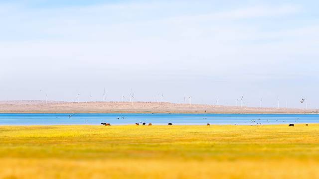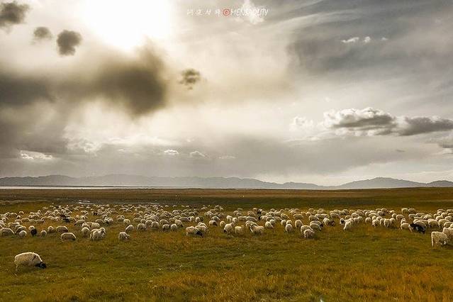 车子翻过一个山口,就看到了遥远初蔚蓝的青海湖,一望不到边。