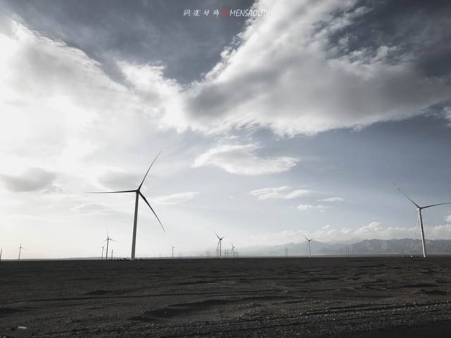 路过一大片风车阵,几十台白色的风力发电机或静或动,让人重新找回了一点现代感,再往前走,就没了,除了电线杆子、通信基站,我们的车,其他偶尔路过的车。