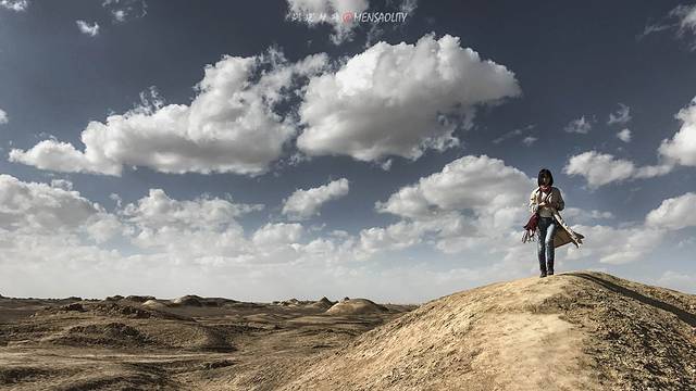 从山雅丹到水雅丹的路上,更多的是沙漠+低矮雅丹的地貌,姑且就叫沙漠雅丹吧。路况依然很好,车辆也多了起来,不时看到有车停靠在路边,钻出穿着大红裙子,披着大红纱巾的妹子,在沙漠里踉跄奔跑,如初恋一般,后面的老司机拿着相机或者手机跟着拍。